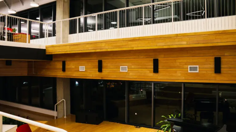 SESAC at 35 MSE is the first time that all of the Nashville office would be housed under the same roof. This posed a challenge against which technology would be beneficial. The project includes a video wall, distributed background audio, headend installation, conference room integrations, white noise system, songwriting rooms, sound abatement and acoustic treatment, distributed video, and a performance stage.